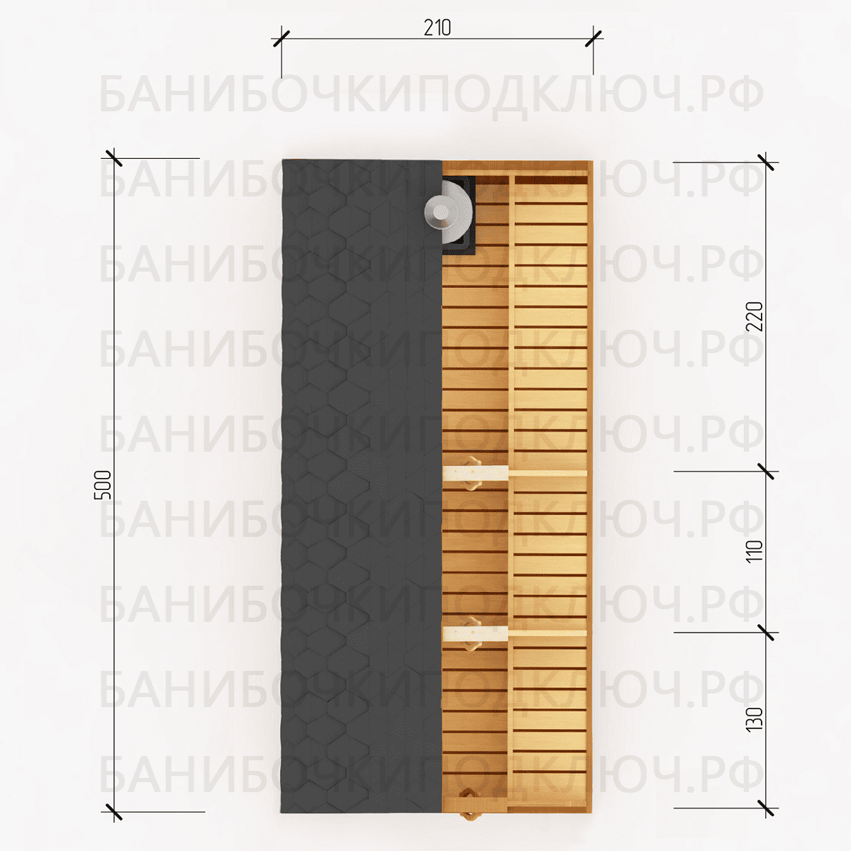 комната отдыха – 200х300, парная 180х220, мойка 120х220
