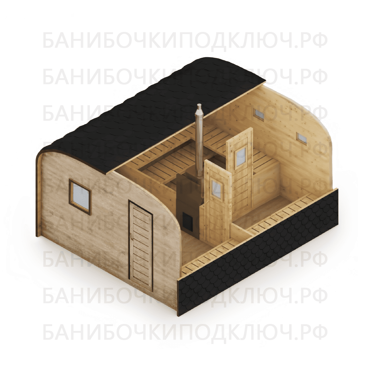 Баня парус 6 x 2,3 м в комплектации "ЛЮКС"